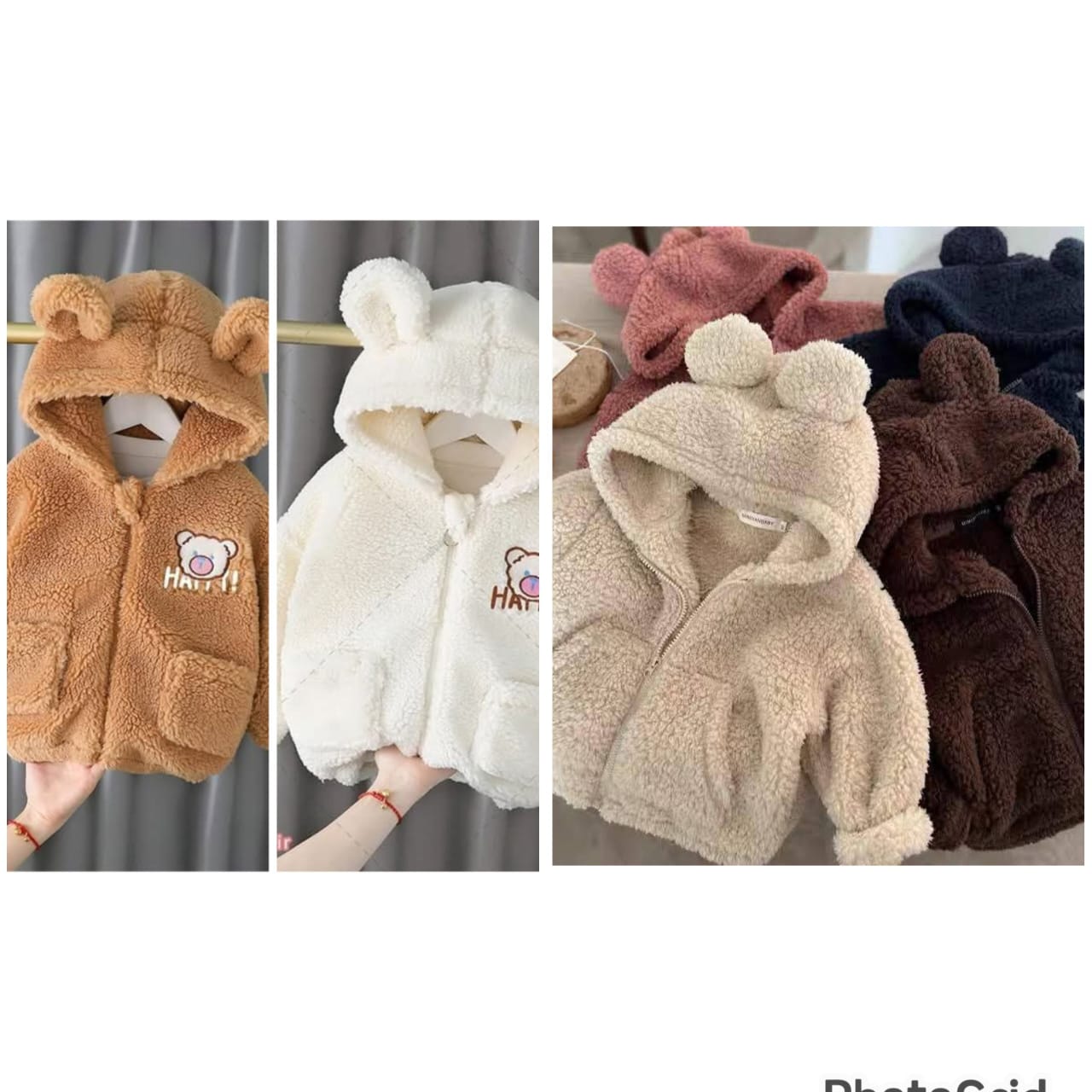جاكت أطفال “تيدي بير” فرو كثيف – بسوستة وغطاء رأس بأذنين (ألوان شتوية)